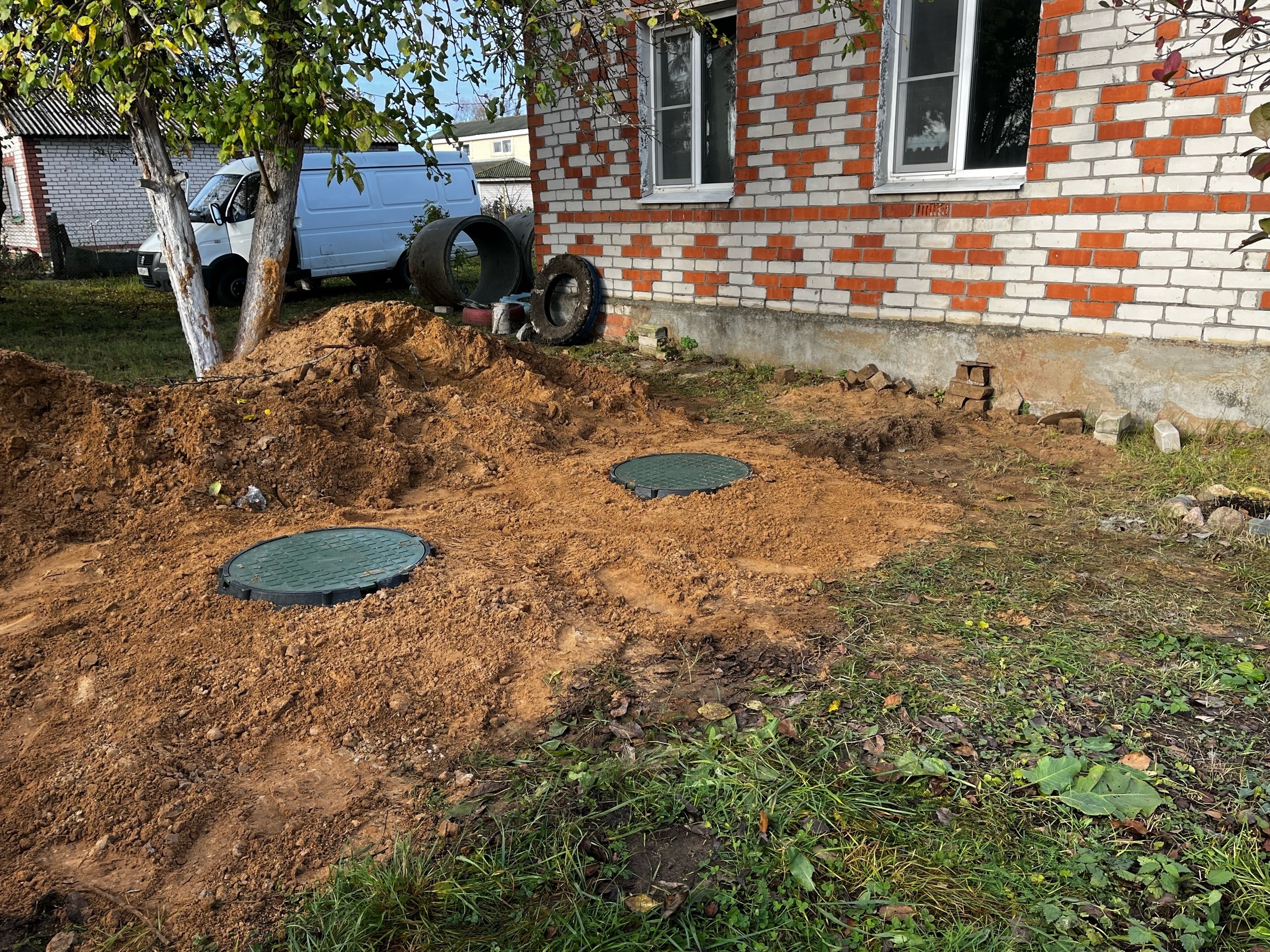 - Делаете ли вы ливневую канализацию (слив с крыши)?Да, но ее нельзя объединять с бытовым септиком. Ливневка — это отдельная система труб и колодцев, иначе первый же сильный дождь зальет ваш септик.